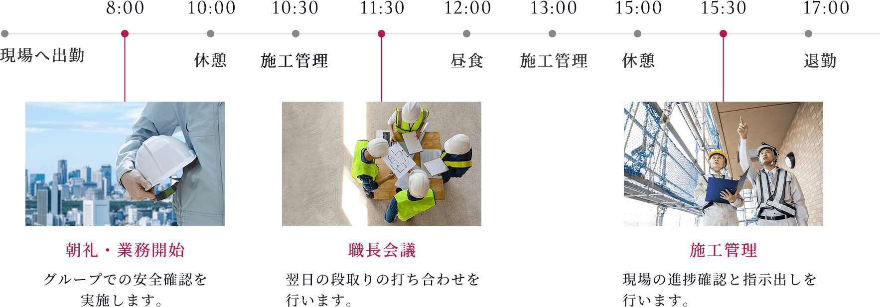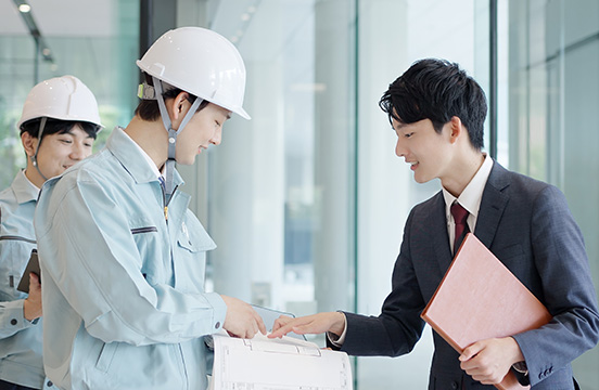 現場で働く職人さんが安全に、工程通りに進められるようサポートするお仕事です。現場関係者の方とのやりとりが多く、コミュニケーション能力が大事にされるお仕事です。